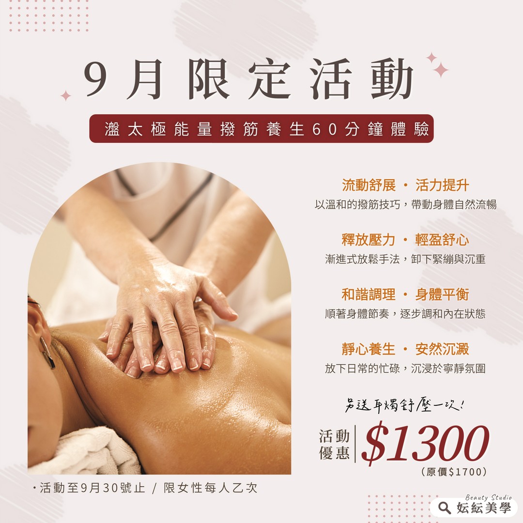 ✨瀊太極能量撥筋養生體驗60min 活動價$1300(原價$1700)